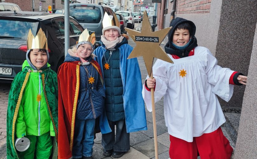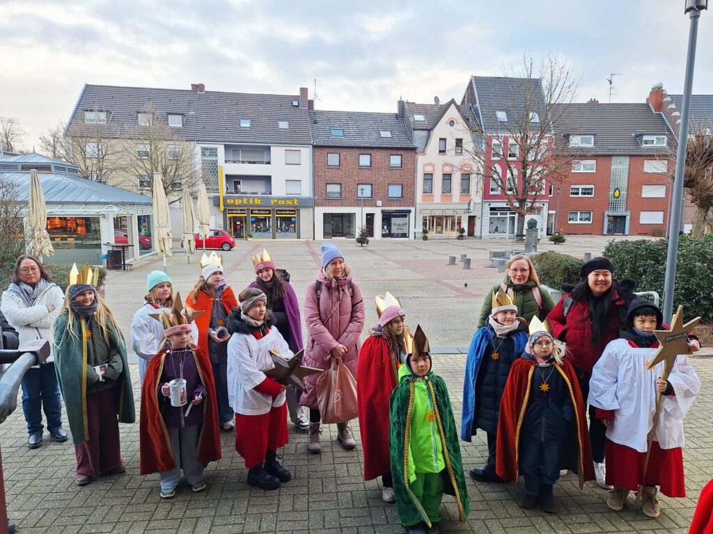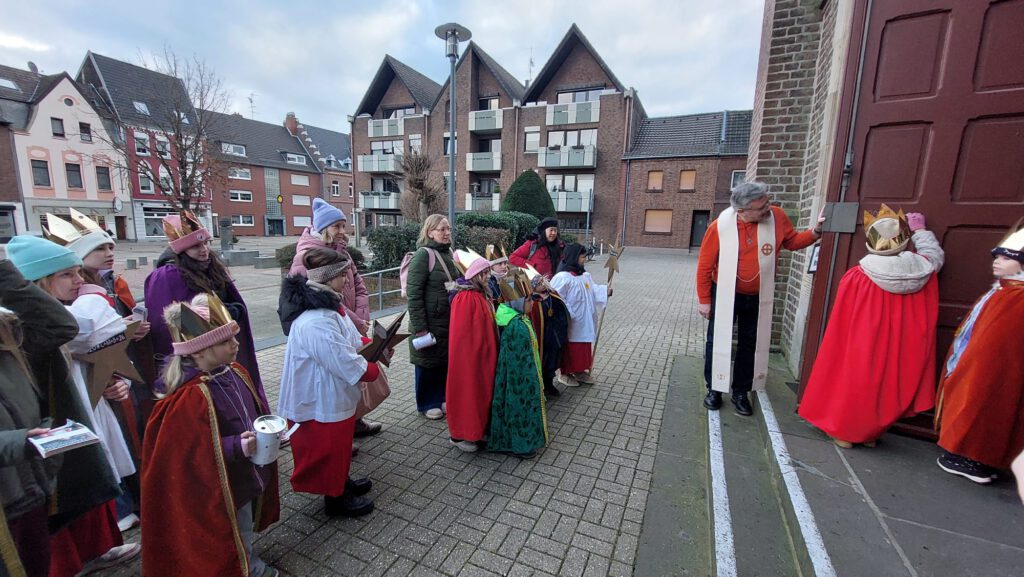 Am Samstag, den 03.01.2026 machten sich auch in Giesenkirchen 14 Mädchen und Jungen auf den Weg, um als Sternsinger den Menschen in der Gemeinde Gottes Segen zu bringen und Spenden zu sammeln für Kinder in Not. Überall dort, wo die Menschen ihre Türen öffneten, wurden sie herzlich begrüßt und freundig erwartet.